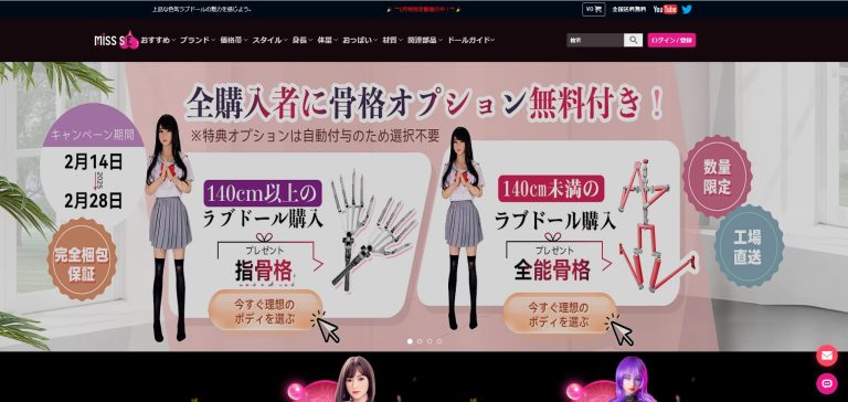 以上はMISSSEで販売されているラブドール。